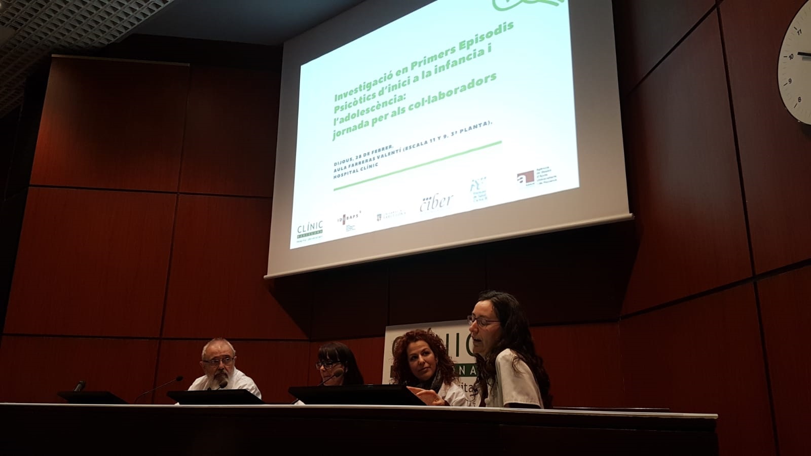Recientemente se ha celebrado la jornada dirigida a pacientes y familiares titulada “Investigación en primeros episodios psicóticos de inicio en la infancia y la adolescencia: jornada para colaboradores”. Organizada por Inmaculada Baeza, investigadora del CIBERSAM (del grupo IP. Miquel Bernardo) tuvo lugar el 28 de febrero en la sala de actos del Hospital Clínico de Barcelona.