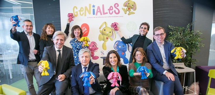 Carrefour y su Fundación han desarrollado de la mano de juguetes Famosa una nueva y exclusiva colección de peluches solidarios conocida como ‘Geniales’, cuyos beneficios irán destinados a la mejora de la calidad de vida de la infancia con enfermedades raras. Los fondos obtenidos (1€ por unidad vendida) serán destinados por el CIBER y Fundación QUERER respectivamente a la adquisición de equipamiento médico especializado de aplicación en el área de Enfermedades Raras del CIBER (CIBERER), para incrementar el conocimiento y posibilitar los estudios en estas enfermedades que afectan a la infancia.